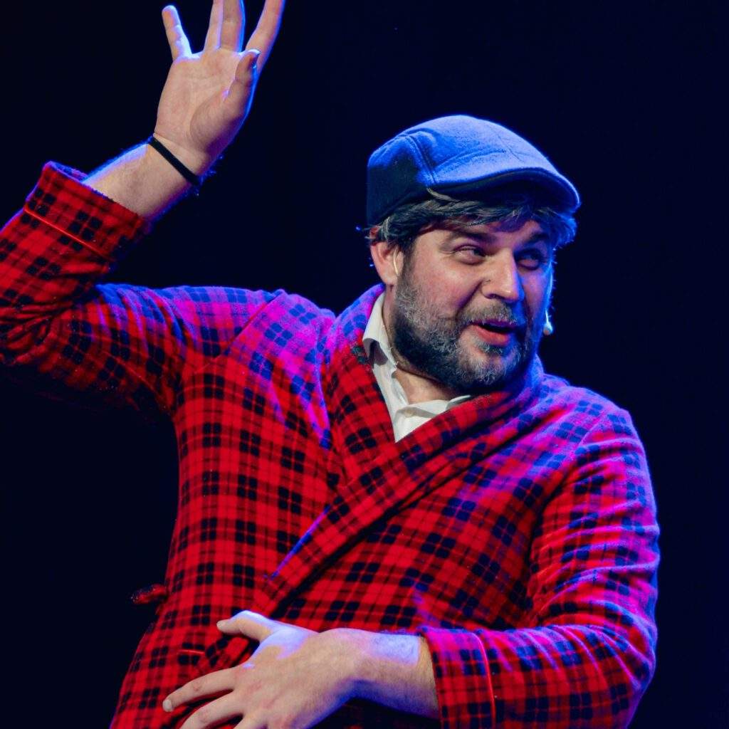 Actor de comedia impredecible: a veces ausente, otras el alma de la fiesta. Entre brotes, monólogos de su pasado y su hipocondría, se siente el anfitrión de la residencia.